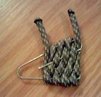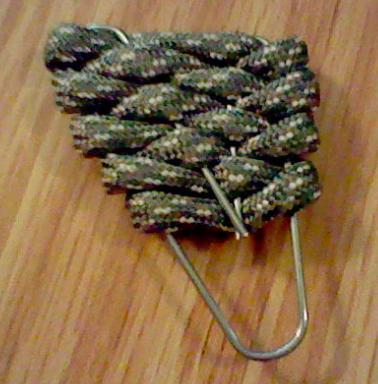 Pasaremos la cuerda entre los dos agujeros que hace el clip, la idea es enroscar la cuerda por todo el clip hasta formar una base que nos permita coger la pua de forma cómoda. Al ser una cuerda nos permitirá que la pua no resvale por el sudor y que sea de muy cómoda sujeción.