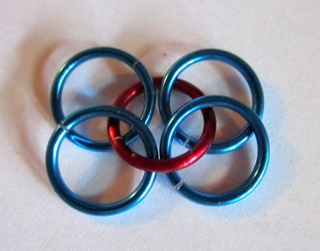 - Anillos de aluminio anodizado (24 azules, 13 rojos)