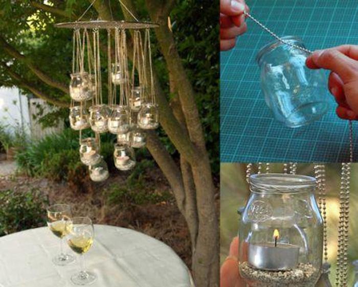 Te recomendamos que antes de poner las velas dentro de los botes añadas un poco de arena o algún otro material que ayude a estabilizar el frasco colgante.
