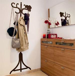 Dibuja el perchero a escala real sobre papel de estraza y recorta la silueta. Terminarás antes que dibujándolo directamente en la pared y te evitarás tener que hacer rectificaciones.