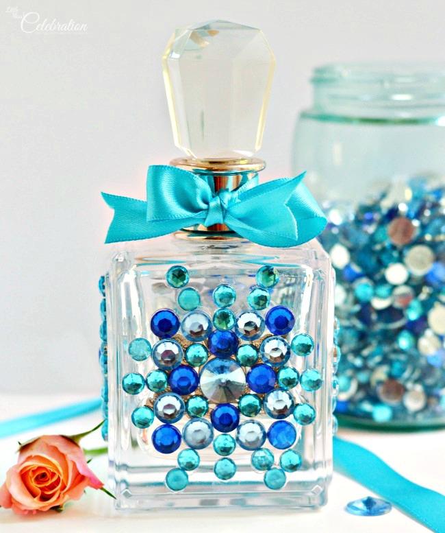 A tus botes de perfume vacíos también puedes darles un nuevo uso exclusivamente decorativo, y para ello será necesario que dejes volar tu imaginación. Puedes optar por pintar las botellas con pintura para vidrio del color que más te guste o decantarte por darles un nuevo aspecto pegando elementos como brillantes, cuentas, lentejuelas, etc. Así mismo, también podrás agregarle lazos o cintas de tela para darle un toque más sofisticado y elegante.