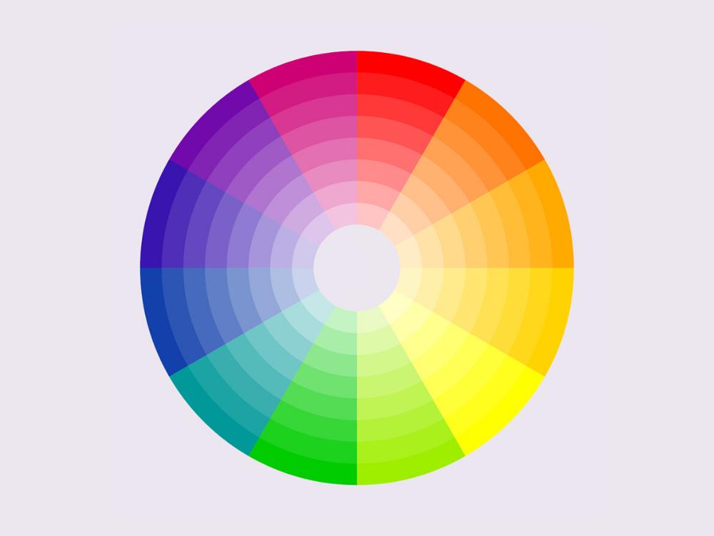 En el círculo cromático los colores también se representan escalonados o degradados, dando lugar a dos tipos de ruedas de colores: