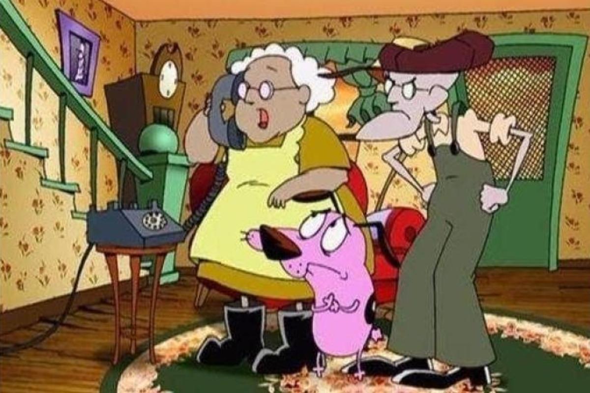 Coraje en realidad es un perro muy cobarde. Es un personaje muy curioso porque es un perro rosa que acompaña a dos ancianos. Juntos viven solos en medio de un desierto, por lo que el “valiente” canino debe protegerlos de psicópatas o monstruos, ya que en el área no faltan los fenómenos paranormales. Aunque siempre sale airoso, pese a que actúa de forma compulsiva más que por su propia gallardía.