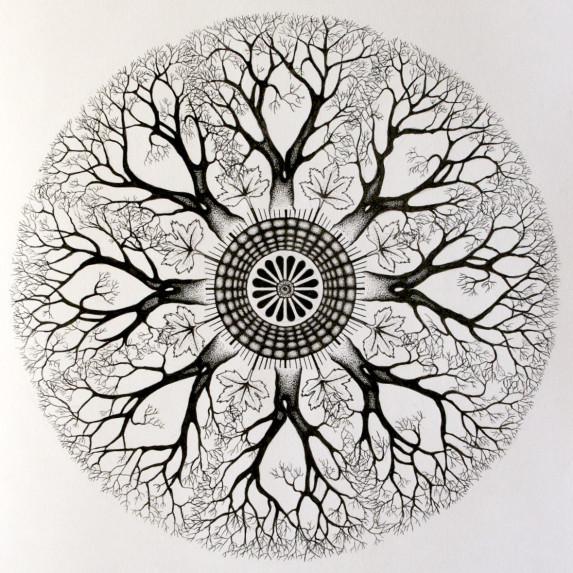 Y por último, para los más atrevidos, esta mandala llena de árboles sin hojas. ¡Puede quedar muy bonita! ¡Deja volar tu imaginación!