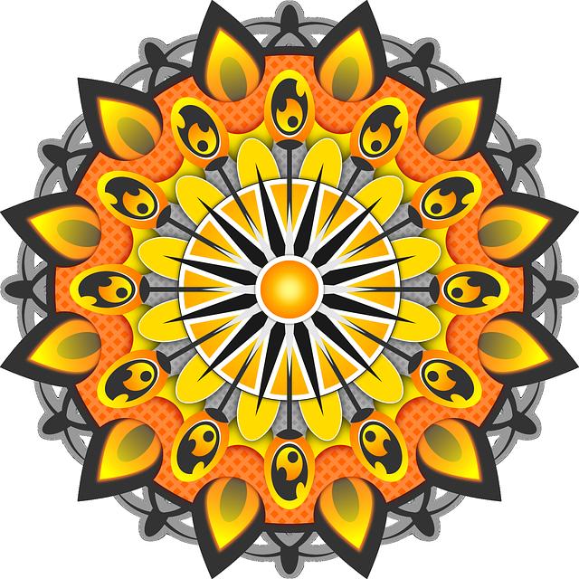 Aquí tienes otro ejemplo de mandala con un sol pero esta vez con los rayos más largos.