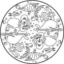 Esta mandala tan divertida seguro que les encantará a tus hijos o alumnos. está llena de animales marinos y rodeada de pequeñas burbujas.