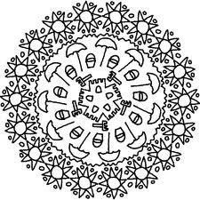 Soles, sombrillas y castillos de arena para pintar una mandala super veraniega.