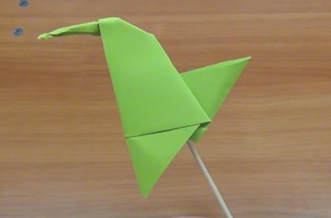 5. A partir de aquí ya tienes la base fundamental, mira el vídeo recomendado para seguir el procedimiento paso a paso. Unos pocos pliegues más y como por arte de magia, a tu colibrí sólo le faltará aletear y salir volando. ¿Te animas a intentarlo?
