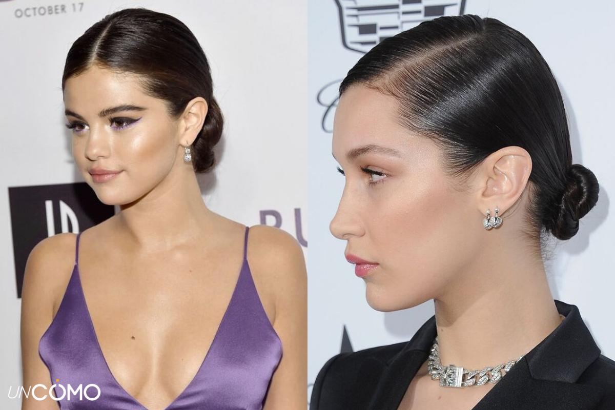 El top knot o moño bailarina es uno de los peinados con gomina para mujer más sencillos de hacer si buscas un look elegante pero informal. Además, este curioso moño permite diferentes variantes, ya que podrás combinarlo con una raya bien marcada en el medio o en un lateral.