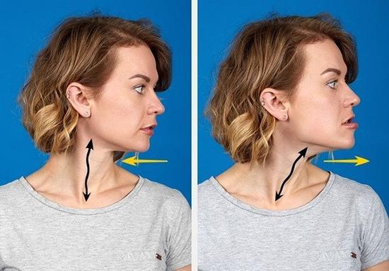 - De nuevo, eleva tu rostro hasta mirar al techo y saca la mandíbula hacia delante tanto como puedas.