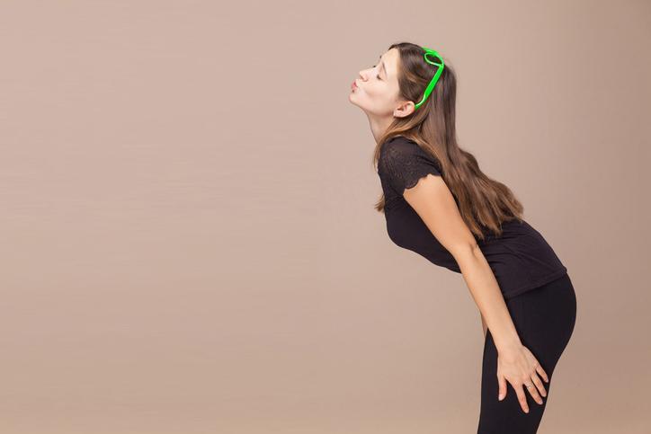 - Mantén la espalda recta mientras estás de pie o sentado (lo que sea más cómodo para ti) y luego cierra tu boca.