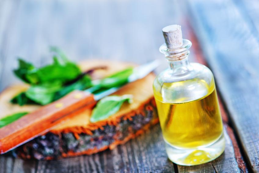 - Coge un par de gotas de aceite esencial de menta, o como máximo cuatro gotas.
