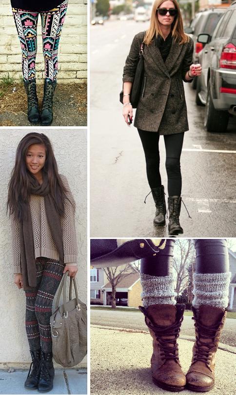 También te sugerimos vestir tus botas de estilo militar con unos leggins, que podrás meter por dentro de las botas y, si quieres, puedes combinar con unos calcetines gruesos.