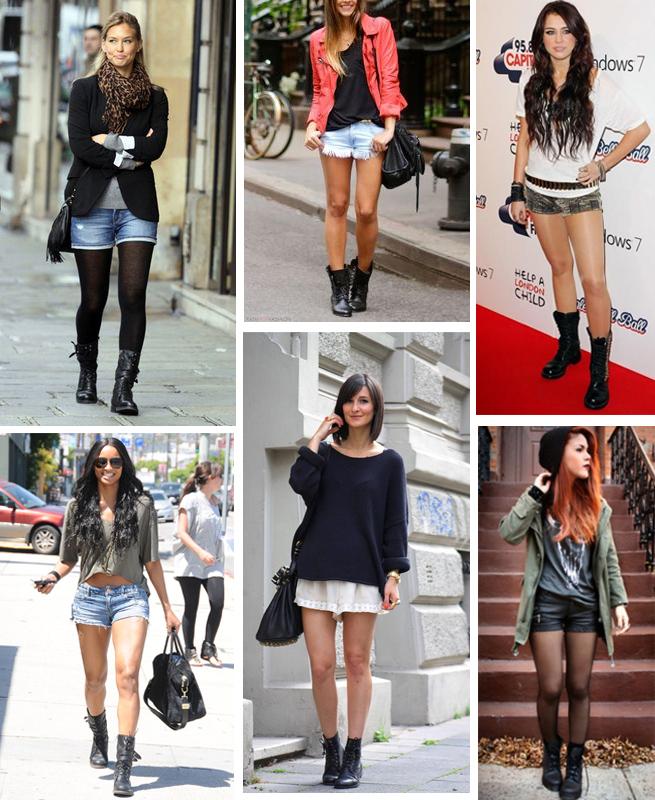 Una de las combinaciones más tendenciosas son las botas militares con shorts, especialmente para looks de día e informales. Porque... ¿quién dijo que los shorts son solo para el verano? Según la época del año, podrás vestirlos con o sin medias, pero siempre combinarán genial con unas combat boots. Así mismo, puedes elegir entre unos jeans cortos, unos shorts también militares, de cuero, anchos... ¡Todo vale!