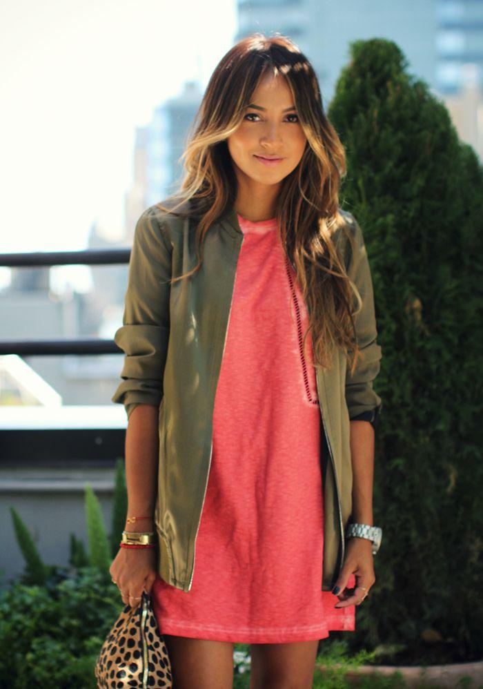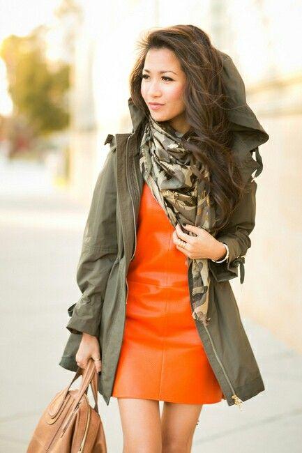 Aunque mezclar verde militar y naranja puede ser mucho más arriesgado, apostar por el coral puede dar un resultado muy interesante. El coral dará un toque más lady a look.