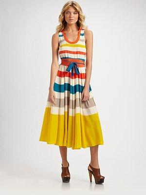 Los vestidos a rayas admiten muchas formas y tejidos, pueden ser ideales para el verano para dar un paseo o ir a un cóctel. Mira el modelo de la imagen, es precioso, femenino, vaporoso y largo, con unas sandalias planas o con tacones bien altos estarás sensacional. Para entretiempo, podrías ponerte una rebeca o chaleco de punto para la noche.