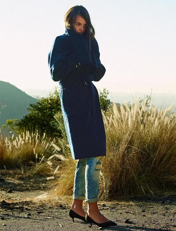 Abrigo azul con jeans