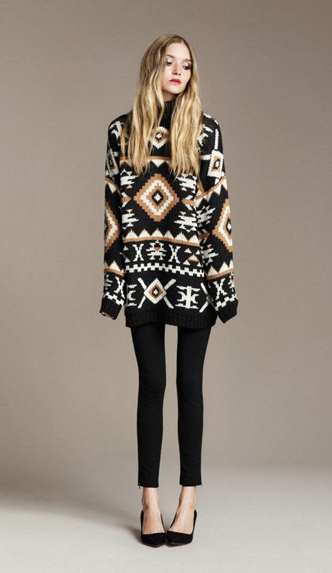 El estilo clásico es combinarlo con unos pantalones ajustados, preferiblemente pitillos. Al ser tan grandes estos jerséis hará que tus piernas parezcan más finas y delgadas, sin embargo unos pantalones anchos darán una sensación de amplitud y no harán tan bien a tu figura.