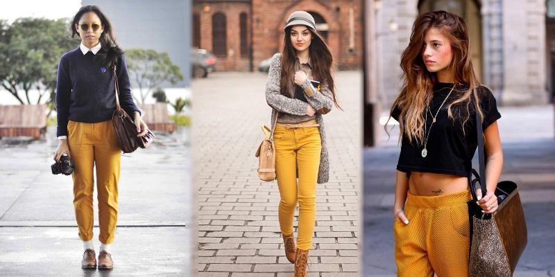 Pero si buscas un look más sencillo y natural, te recomendamos que combines tus pantalones mostaza con colores neutros como el negro o el blanco. También puedes escoher cualquier color tierra ya que encajan perfectamente con la tonalidad de tu prenda. Así pues, los marrones, beige, anaranjados o color crema son ideales para conseguir un outfit a la moda y sencillo.