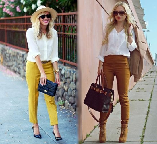 Pantalón mostaza outfit: con camisa o blusa blanca