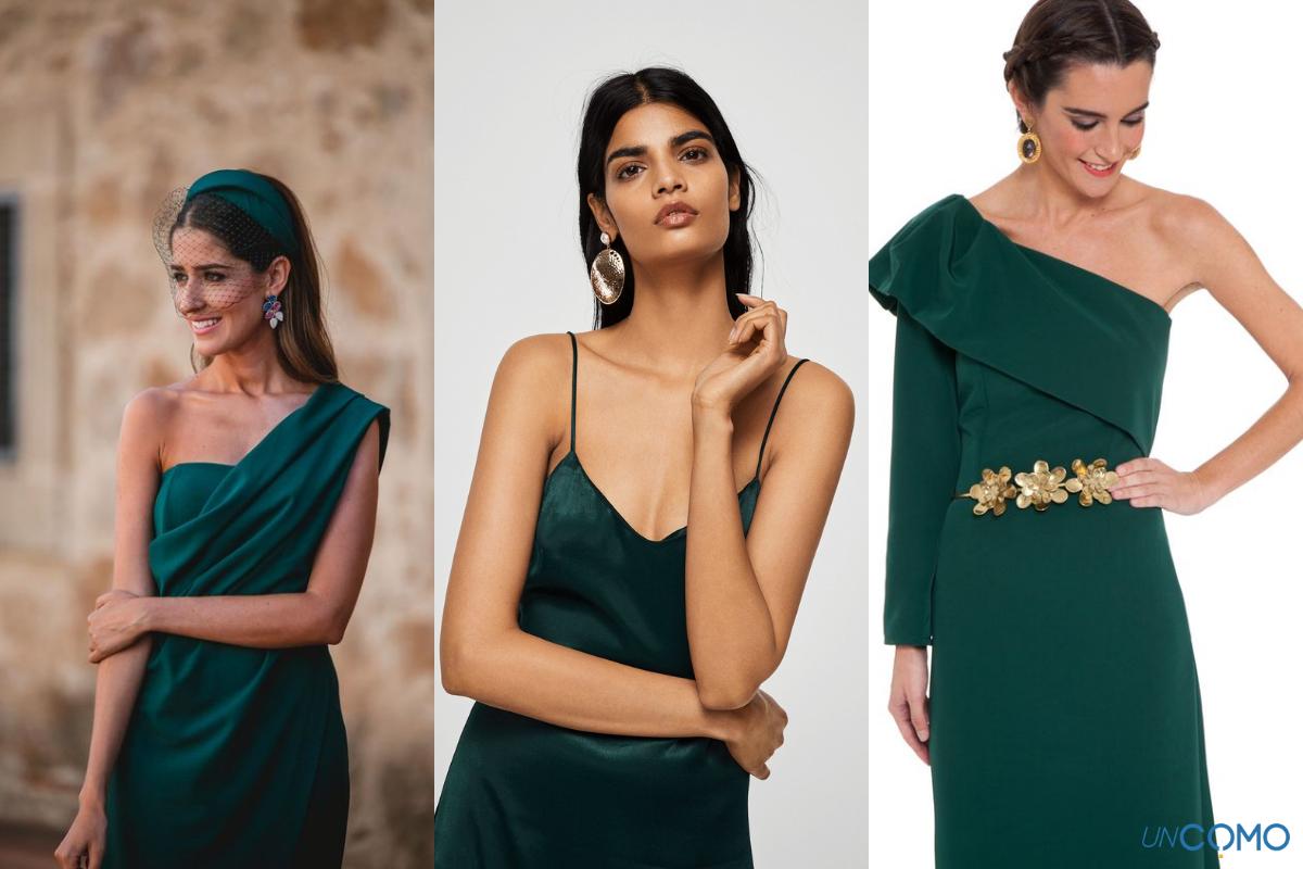 Además de estar en tendencia, el color verde botella permite jugar con un bonito abanico de colores para crear los looks más adecuados para cada ocasión. No obstante, dependiendo del tipo de vestido que sea (corte recto, asimétrico, camisera, midi...) será mejor combinar con unos zapatos o con otros.