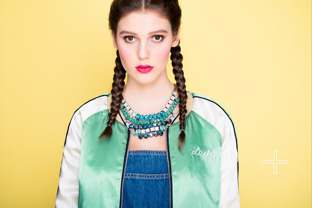 Este tipo de cazadoras se han visto mucho en EE.UU. desde hace décadas, son las típicas de instituto y de universidad. Normalmente son monocolor o bicolor y en la espalda, a veces también delante, llevan un mensaje escrito, ya sea el nombre de un colegio o universidad o una palabra o frase reivindicativas. si optas por una bomber de este tipo, elije una que lleve un mensaje con el que te sientas identificada. De nuevo, puedes usar prendas de colores básicos o del color de la chaqueta o, como en este caso predomina un color liso, puedes atreverte con vestidos, faldas, shorts o camisetas estampadas.