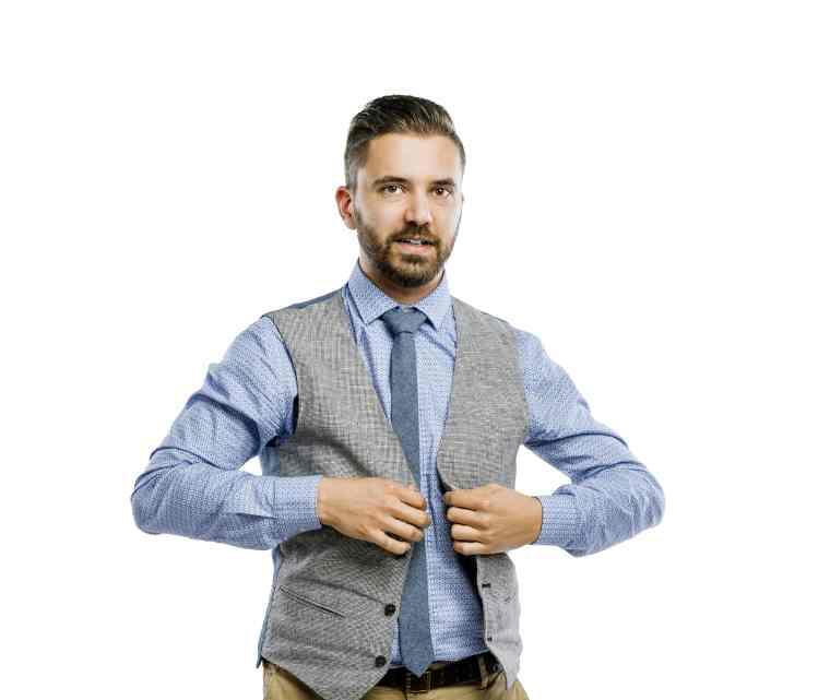 Con la corbata gris, independientemente del tono de traje que elijas, siempre puedes lograr mejorar el estilo del traje añadiendo un chaleco del mismo tono que la corbata.