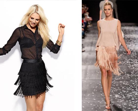 Un toque glam y muy sofisticado lo dan las blusas de seda combinadas con faldas de flecos. El truco para lograr un look sofisticado es que la blusa de seda sea ancha y la lleves por dentro de la falda; de este modo se entallará a tu cuerpo marcando tu silueta y le dará un halo de elegancia extrema.