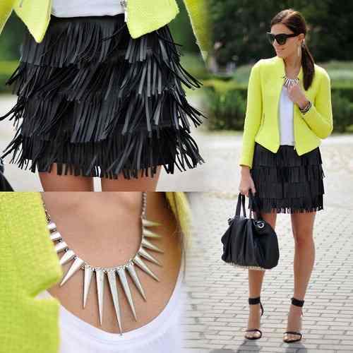 ¡La moda charlestone ha vuelto! Los flecos son su máximo representante y ahora podemos verlos en distintas prendas de ropa como bolsos, faldas o chalecos de flecos. Para saber cómo combinar una falda de flecos lo primero que tendremos que tener en cuenta es el color de la prenda: no es lo mismo querer combinar una que sea de color negro con otra que sea morada.