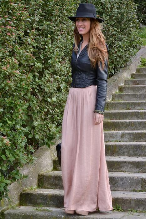 Asimismo, combinar una falda larga con una cazadora de cuero será una gran idea. Conseguirás un contraste genial y un aspecto muy rompedor.