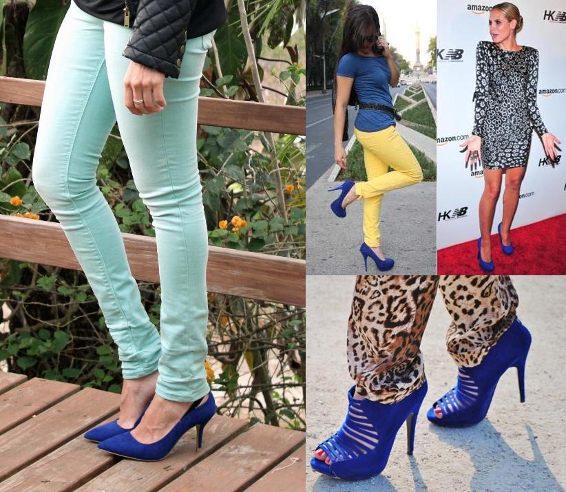 No creas que estas son las únicas opciones a la hora de calzarte un par de zapatos azules, también puedes decantarte por unirlas con prendas de color: