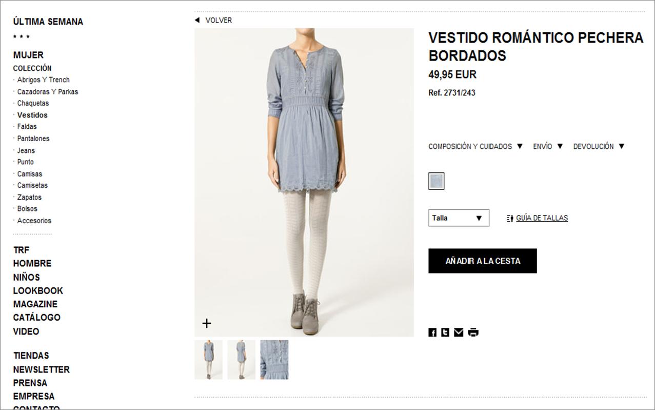 Habrá un menú en el que puedas escoger la talla (suelen ofrecer un gráfico con las medidas correspondientes a cada talla para que no te equivoques a la hora de comprar), el color o diseño de la prenda en cuestión.