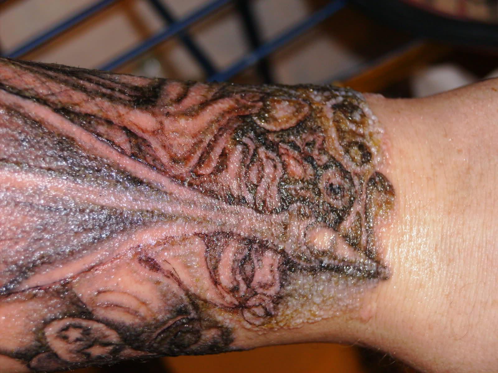 Suelen ser infecciones bacterianas, pero también pueden aparecer infecciones fúngicas o por hongos. En este artículo puedes ver fotos de tatuajes infectados, como la de la portada o la de aquí abajo. Los tattoos pueden infectarse durante la sesión de tatuado mientras se hacen las pequeñas heridas, o bien en después de la sesión, durante el proceso de curación tanto inmediatamente como en las semanas que puede llegar a tardar en curarse del todo.
