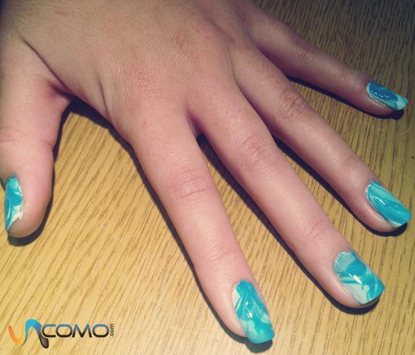 Luego utiliza un palillo de dientes para mover el círculo y modificar su diseño elaborando un dibujo, pero no mezcles mucho los colores para evitar que se confundan unos con otros. A continuación aplica vaselina alrededor de tus uñas y en la piel, y sumerge el dedo en el diseño durante unos diez segundos. Después deja que se seque mientras con un bastoncillo higiénico impregnado de quitaesmalte limpias los restos sobre los dedos y los bordes de la uña. Por último, deja que todas las uñas se sequen y aplica una capa por encima de esmalte transparente. Puedes ver todos los detalles en nuestro artículo acerca de cómo decorar uñas con agua.