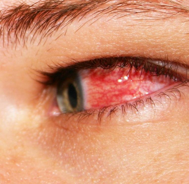 Enjuague el ojo con agua tibia.