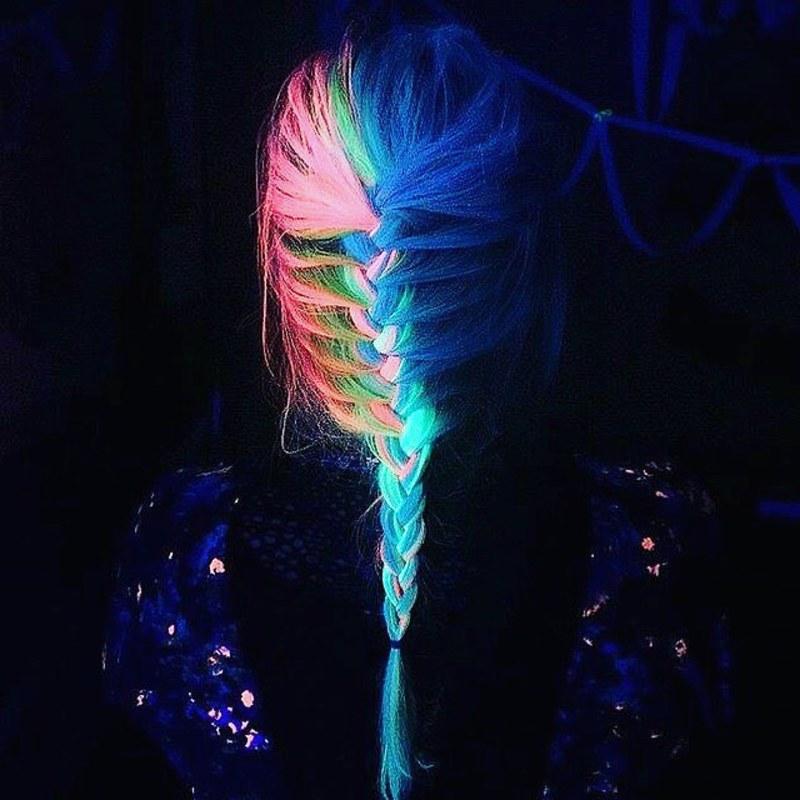Si quieres que tu cabello reluzca bajo las luces ultravioletas de discotecas y eventos nocturnos, primero debes comprar el tinte semipermanente que logra este efecto sobre tu melena el cual encontrarás en tiendas y peluquerías especializadas o bien, en tiendas online. Si quieres que el efecto dure menos tiempo, con un par de lavados se irá, debes optar por los geles fluorescentes en vez de por el tinte.