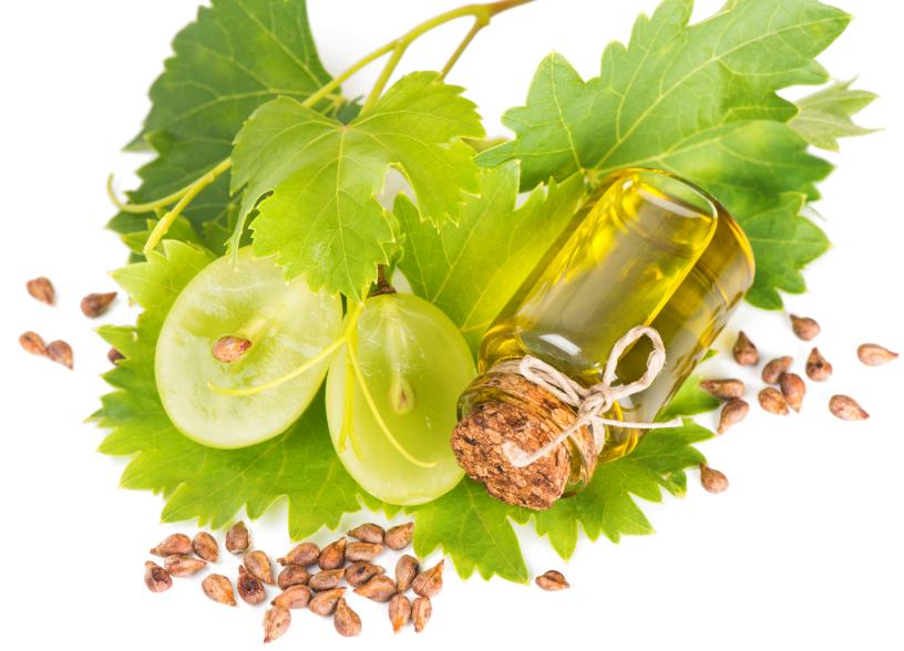 - En un bote de vidrio oscuro, vierte primero el aceite de almendras y el aceite de semilla de uva.