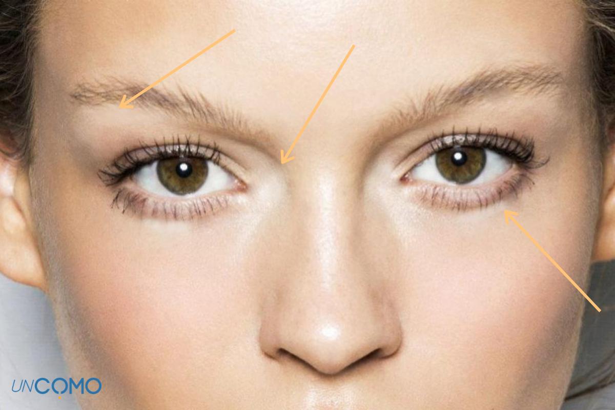 Si te preguntas cómo maquillar los ojos pequeños, debes conocer también este truco. El iluminador es un producto clave para dar luz y potenciar el efecto de amplitud en la mirada, así que si no estás acostumbrada/o a usar iluminador, hazte con una buena marca y aplica unos puntos de luz en: