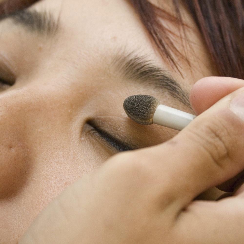 La sombra más clara se aplica en el párpado móvil y la sombra media, en el pliege.