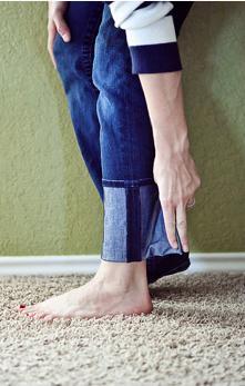 Con el pantalón vaquero puesto, dóblalo sobre sí mismo hasta que te quede el final por la altura del tobillo.
