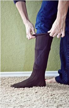 Ahora, ponte un calcetín de media que vaya por encima del pantalón (de los que llegan a la rodilla, no tobillero) y sujete toda la doblez alrededor de tu pierna, sin que se deshaga.