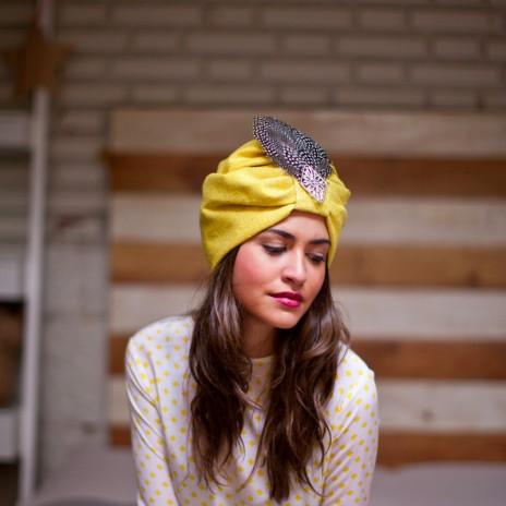Un turbante también es perfecto para dar un toque vintage. Para ello es mejor optar por el tipo de lazada que usaban las mujeres de los años 30 y 40 y que hace que el turbante cubra solo la parte superior de la cabeza. Si juegas con el color de las telas podrás conseguir mejores efectos.