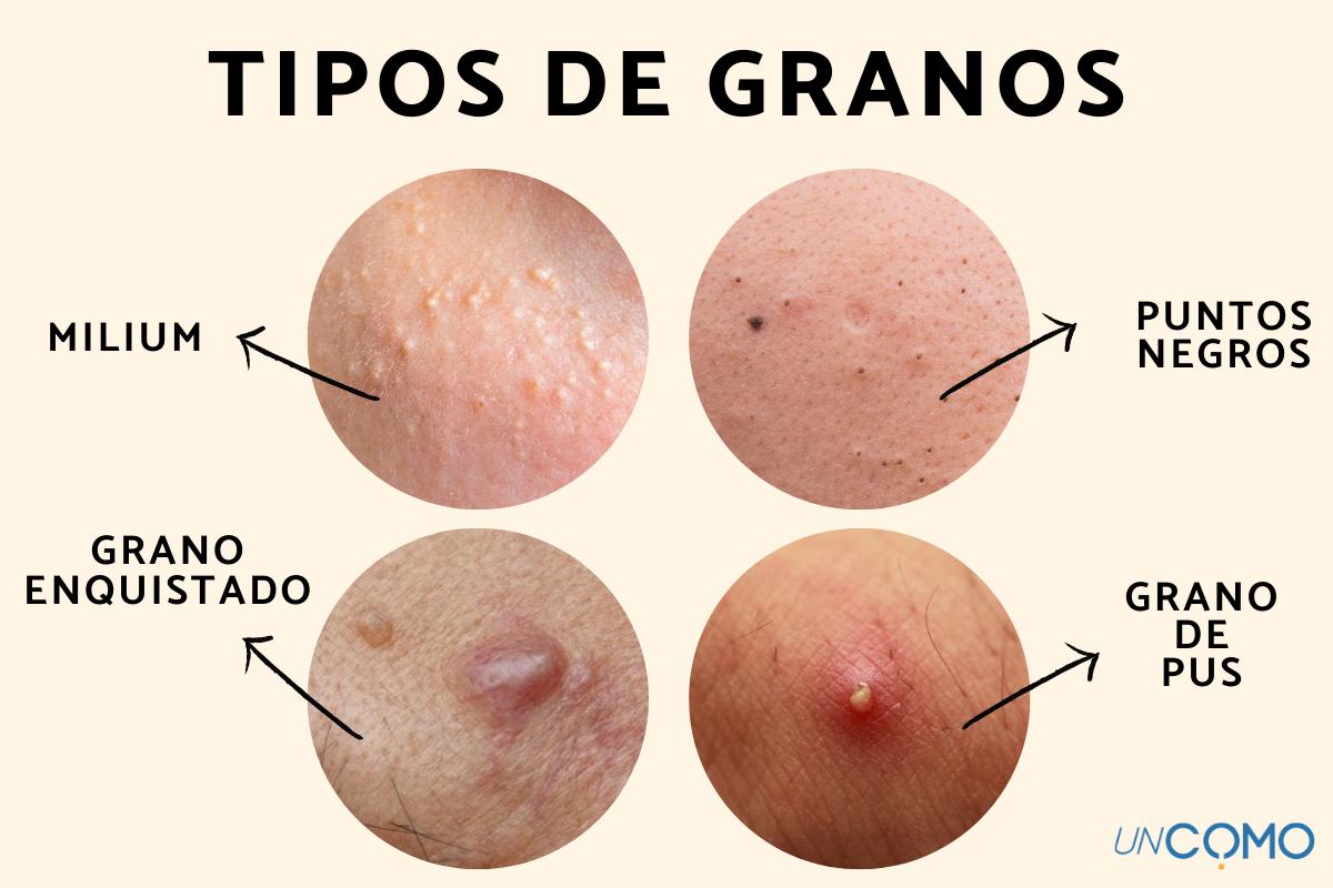 La acumulación de queratina que se queda en nuestra piel hace que la grasa no pueda salir a la superficie, motivo por el cual aparecen estas protuberancias. Aunque cualquier tipo de persona puede tener estos quistes, suelen ser más habituales en las pieles grasosas y en aquellas personas que genéticamente son más susceptibles a tener problemas de acné. Por supuesto, algunos malos hábitos como fumar, llevar una mala dieta o descuidar la higiene facial pueden hacer que aparezcan estas bolitas de grasa en la cara más a menudo, por lo que es esencial cuidar de nuestra salud y de la de nuestra piel. Cabe remarcar, además, que no debemos confundir estas bolitas de grasa con puntos negros o con granos de pus, como verás en la imagen de abajo.