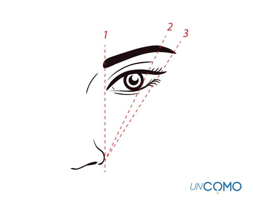 - Por último, tendrás que determinar en qué punto acabará la ceja. Para ello, continúa con el lápiz pegado en la aleta de la nariz pero ladeándolo hasta coincidir con el extremo externo del ojo. Será justo ahí donde tu ceja deba terminar.