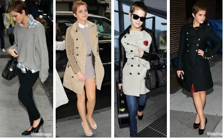 Emma se ha declarado amante de las grandes marcas como Balenciaga o Calvin Klein. Sin embargo, este estilo que pocos se pueden permitir lo usa solo en la alfombra roja. Para el día a día prefiere usar ropa de la tienda prêt-à-porter Topshop. Esta tienda destaca por un estilo informal pero elegante, sin estampados ni colores llamativos, y es lo que destaca en su mayoría el armario de Emma.