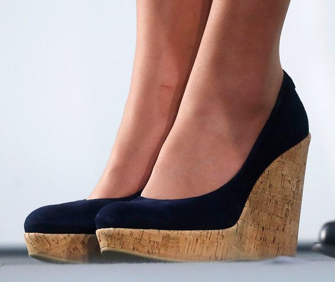 En cuanto a los zapatos, Kate destaca en su vida diaria por calzar bailarinas a ras del suelo y, en los actos oficiales que lo permiten, es muy común verla con zapatos de cuña nunca demasiado altos. Reserva los tacones para las grandes ocasiones.