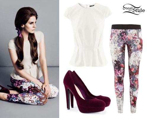 Estampados de flores. En camisetas, pantalones, medias o vestidos. Debes saber que le apasiona este tipo de estampado. Para vestir como Lana del Rey puedes probar lo que ella suele hacer, que es mezclarlos con alguna prenda sencilla de un solo color para que el motivo floral destaque. !Atrévete con este look tan casual!