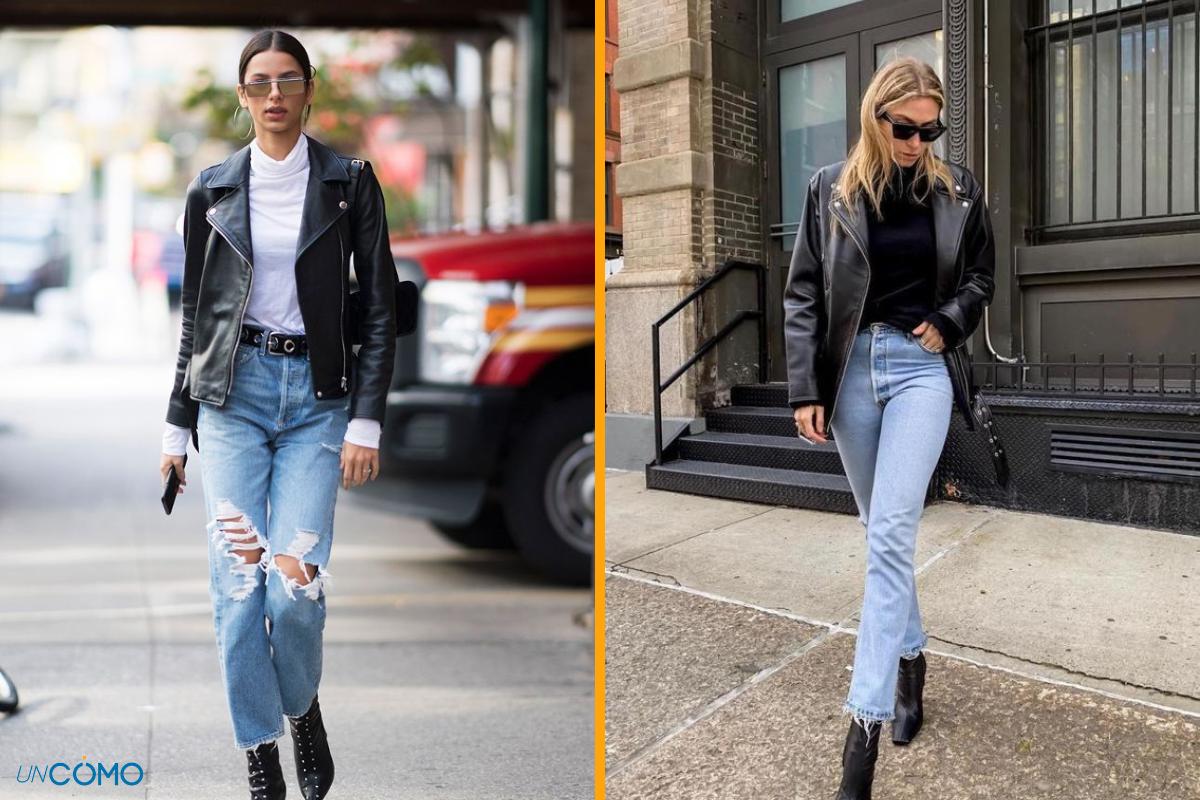 Chaqueta de cuero y jeans