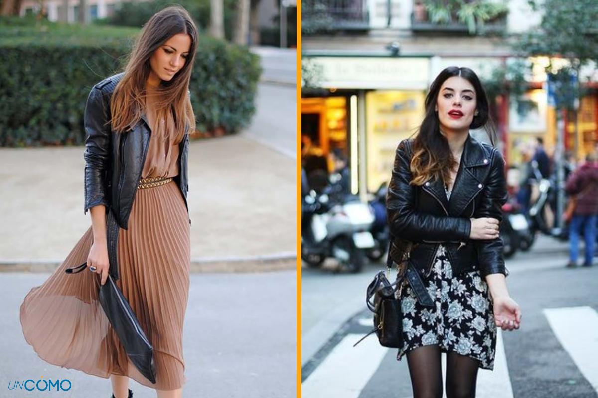 Chaqueta de cuero y vestido
