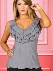 Nada que haga que la mirada se centre en el área del pecho te ayudará a disimularlos, por eso evita los collares demasiado llamativos, las camisas o vestidos que añadan volumen en esa zona (como la que figura en la imagen) las camisetas con grandes imágenes o estampados en el área de los senos etc. Escoge prendas discretas y accesorios con estilo que no sean muy grandes.